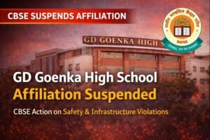 गुरुग्राम के सोहना स्थित GD Goenka High School के लिए आज का दिन चिंता भरा रहा। CBSE (Central Board of Secondary Education) ने स्कूल के खिलाफ सख्त कदम उठाते हुए उसकी affiliation को सत्र 2026-27 के लिए निलंबित (suspend) कर दिया है।